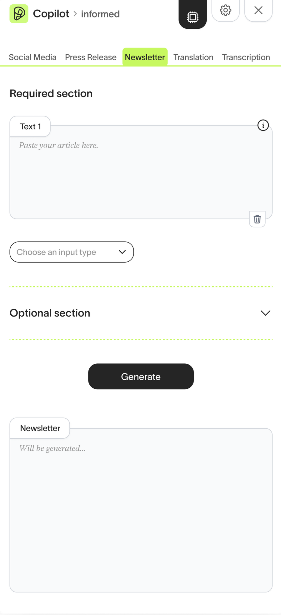 Our AI content pilot automates your content production - built for editorial, PR / Comms and marketing teams.